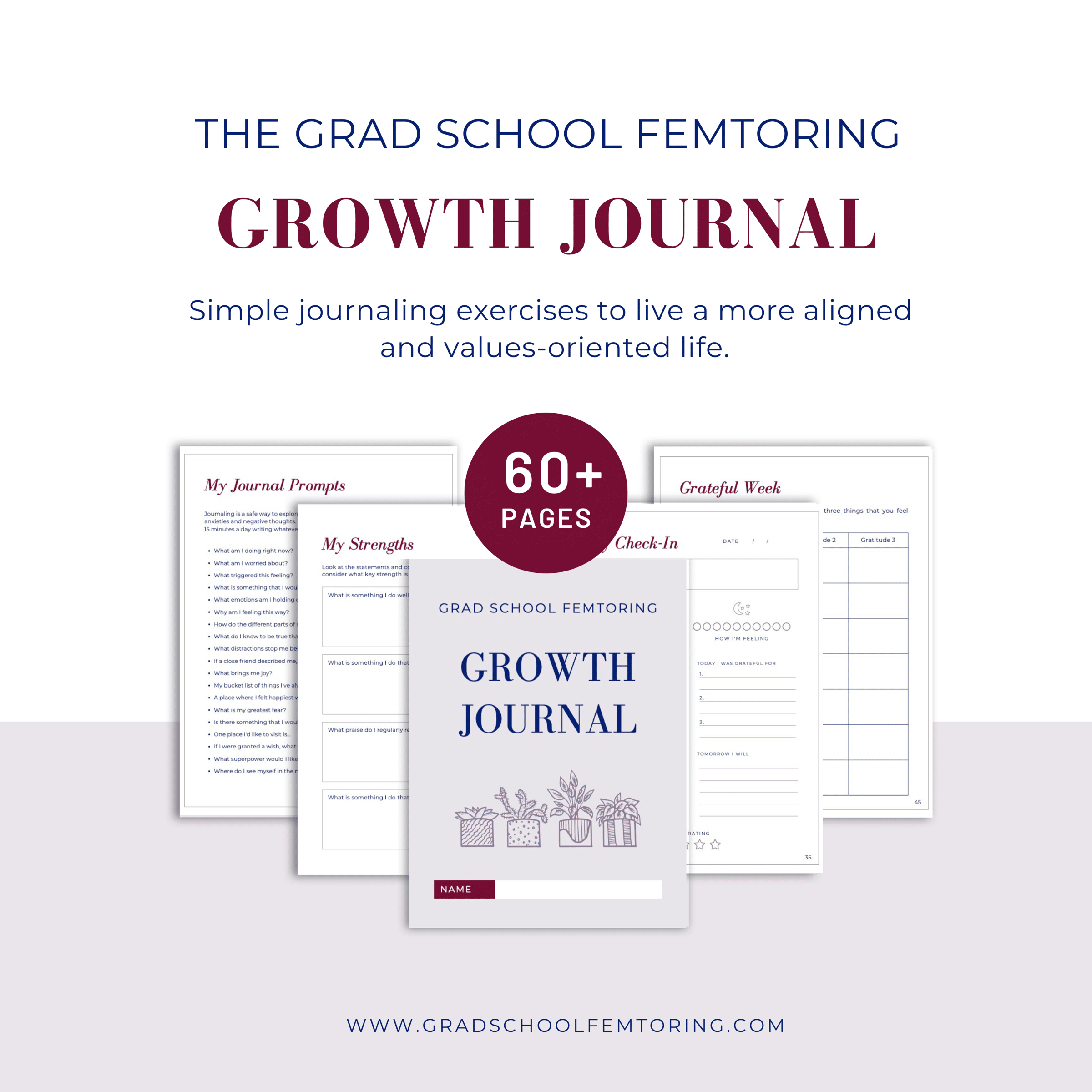 This is a 60+ page printable journal. Print this or use with a tablet/computer to help you start or maintain a journaling practice. The journaling exercises will help you uncover your dreams, goals, strengths, and areas of growth. They will also help you live a more values-aligned life. If you’re interested in working on your personal development, this journal will be a great resource for you.